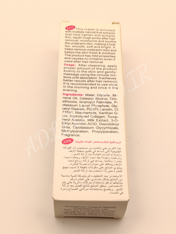 این محصول با ترکیبات مؤثر مانند آربوتین، ویتامین E و عصارههای طبیعی ساخته شده است تا به صورت عمیق به پوست نفوذ کرده و نواحی تیره زیر بغل، کشاله ران، آرنج و بین پاها را روشنتر کند.